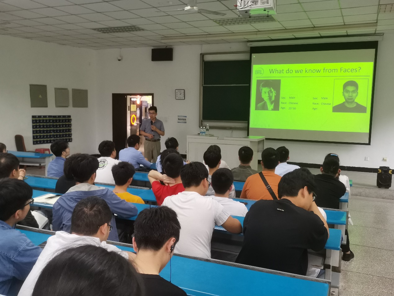赵启军教授从自己2张不同时期的照片开始说起,引入人脸识别技术的发展历程。他通过风趣、生动的讲解,一步步把学生带入人工智能的天地,开阔了学生的眼界。讲座针对目前自动人脸识别系统中存在的问题,提出了一种基于人脸照片的任意视图人脸识别方法,并指出了与现有方法的不同之处。该方法能生成准确和逼真的3D人脸,从而扩大图库,用以提高人脸识别精度。