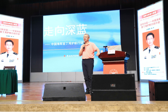 从2008年12月派出第一批编队至今,中国已先后派出38批护航编队奔赴亚丁湾,为推动建设持久和平、共同繁荣和谐的世界,保驾护航。为了帮助同学们了解中国海军的发展和海军走向深蓝背后的故事,5月20日下午,我校客座教授、原南海舰队政治部副主任、海军少将陈俨将军做客我校第26期形势与政策大讲堂暨贵州工业管理学院党史学习教育专家报告会,向师生们作了“走向深蓝-中国海军亚丁湾护航行动纪实”专题报告。本次报告会由马克思主义学院、党委组织部、党委宣传部和教务处联合主办,马克思主义学院求是共进社协办,副校长陈传伟主持了报告会。贵州工业管理学院600多名师生聆听了报告。