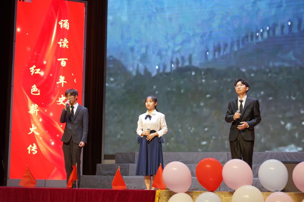 为隆重庆祝建党100周年,重温党和中华人民奋进的光辉历程,歌颂中华人民的伟大成就,继承和发扬中华优良传统,充分展示当代大学生的爱党爱国爱社会主义的深厚情怀,5月24日18点30分,由图书与档案管理中心、校团委、经济与管理学院联合主办的以“诵读百年史,红色薪火传”为主题的“青春颂中华”朗诵大赛在长虹会堂举行。学校党委常委、副校长郑予捷,学校党政办主任、机关第一党总支书记田飒,学生工作部部长岳德坤,图档中心副主任王义,机关第一党总支副书记刘薇,机关第二党总支副书记罗钦月,经管学院党总支副书记(主持工作)张晓维,经管学院党总支副书记李曲等有关领导,各学院团总支书记和师生代表约千人在长虹会堂齐聚一堂,共赴这场期待已久的精神盛宴。